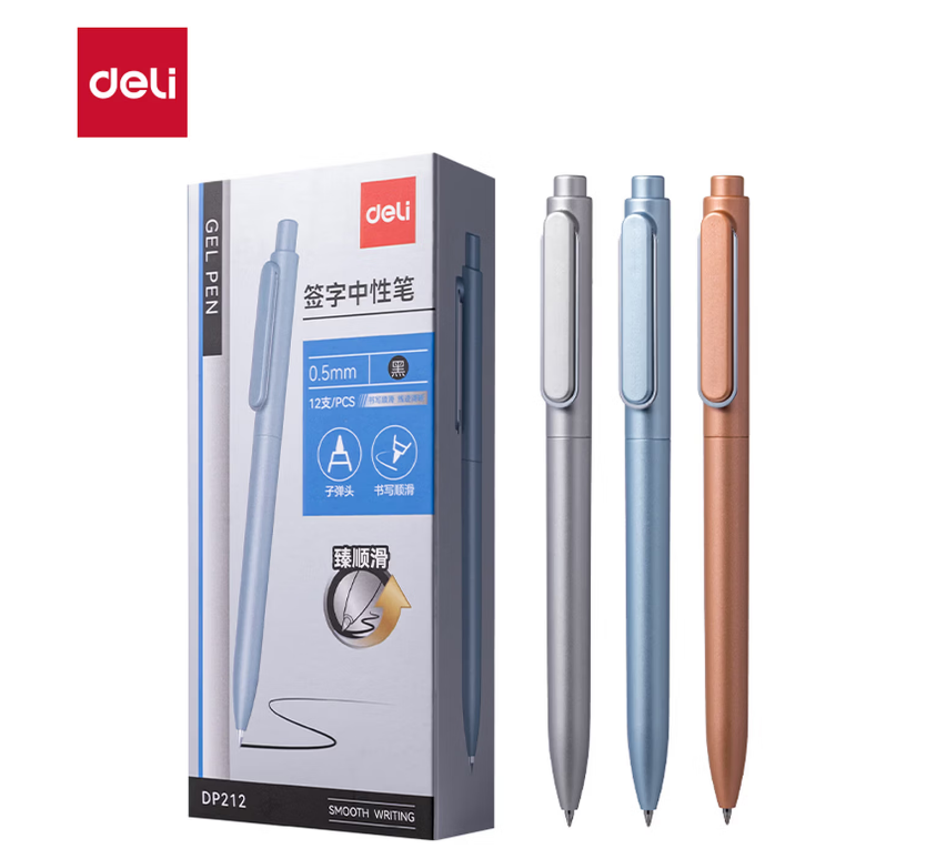 得力DP212臻顺滑按动中性笔0.5mm子弹头(黑)(支)